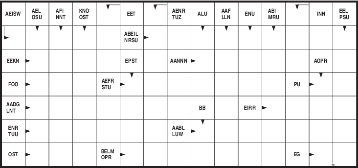 Einer zuvielWähle gut und vor allem scharfsinnig zwischen den angegebenen Buchstabenpaaren, sodass sich ein Gitter mit sinnvollen Wörtern ergibt.