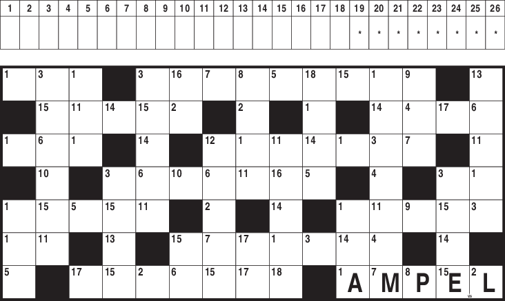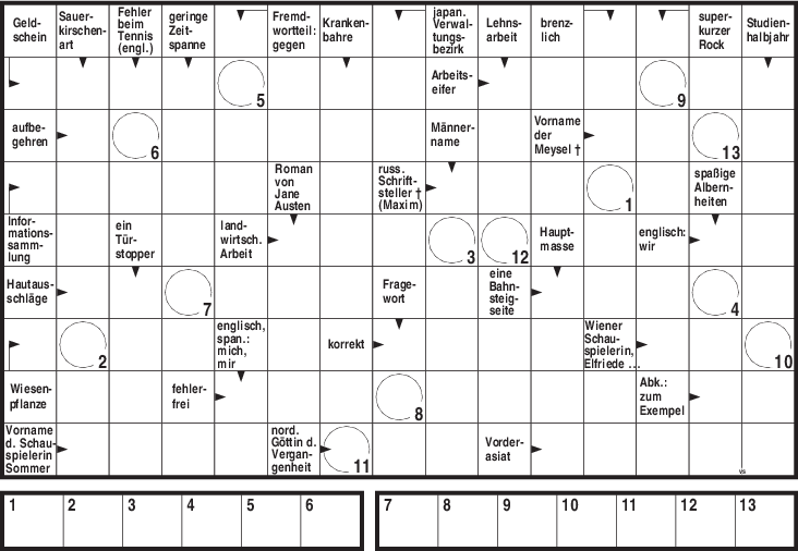 ZahlenkreuzworträtselEin Rätsel für Codeknacker. Gleiche Zahlen stehen für gleichen Buchstaben: hier ist detektivischer Spürsinn gefragt, um die richtigen Wörter zu finden.